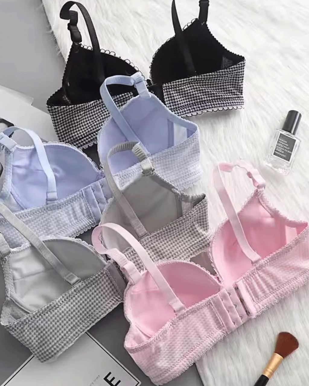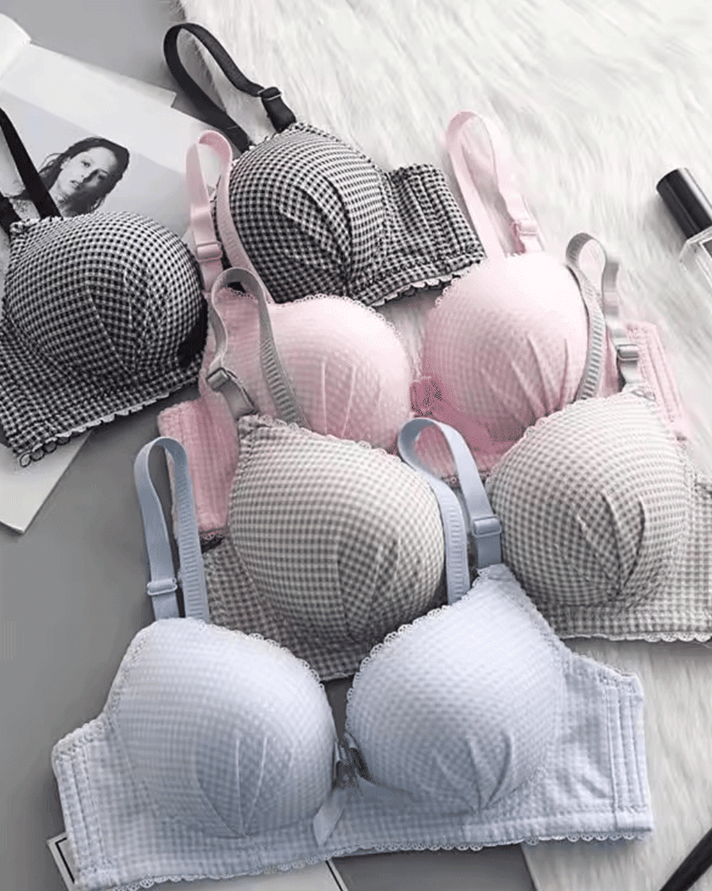 طرح چهارخانه این سوتین زنانه در کنار طراحی صدفی و قالب استاندارد، ظاهری جذاب و متفاوت ایجاد کرده است. این طرح منحصربهفرد مناسب بانوان خوشسلیقهای است که به جزئیات اهمیت میدهند و بهدنبال ظاهری متفاوت و جذاب هستند.