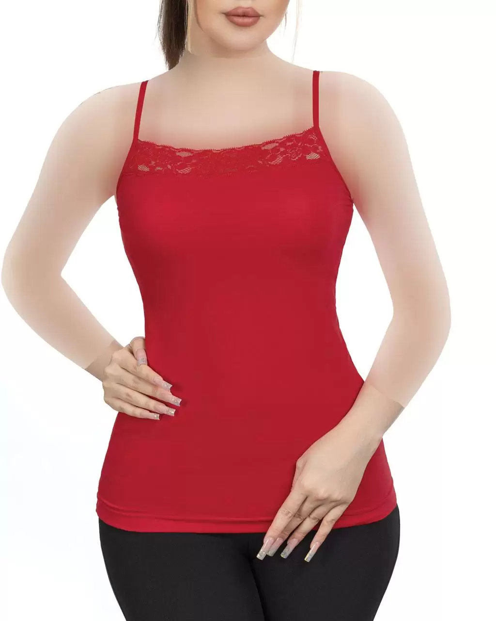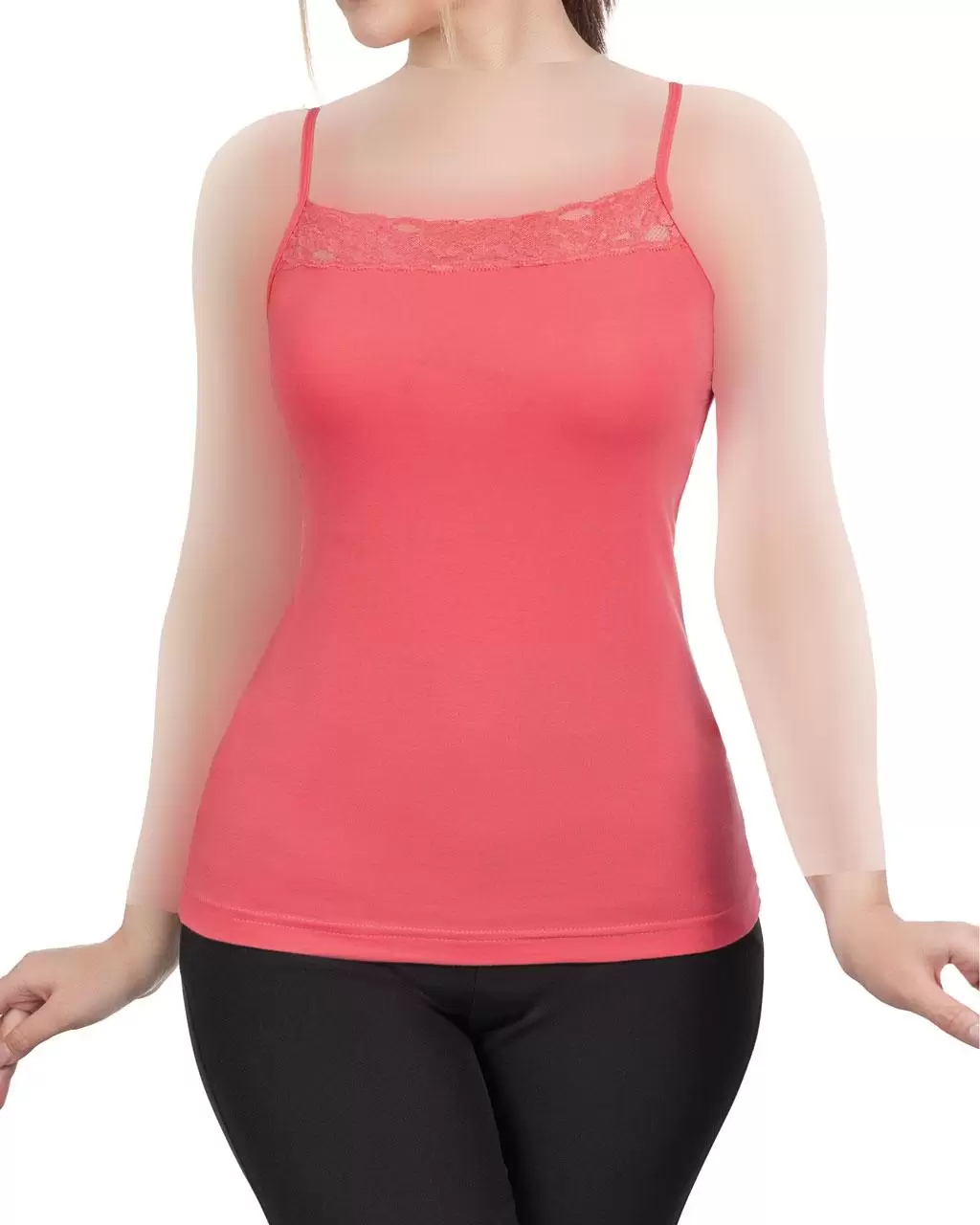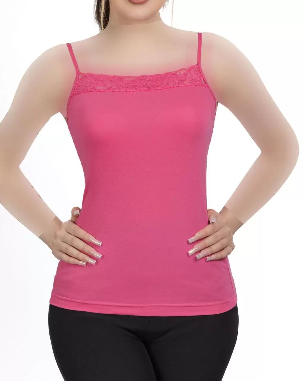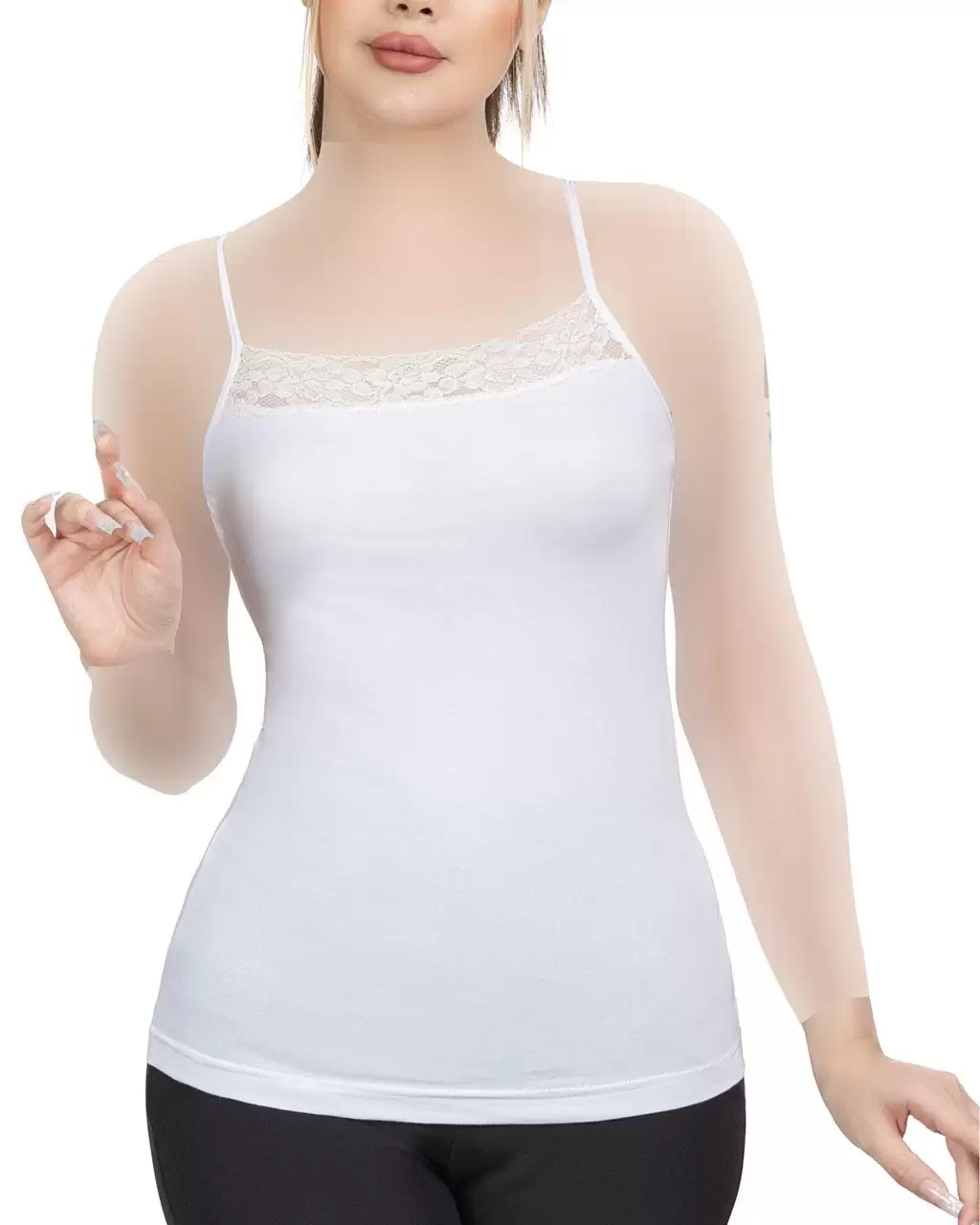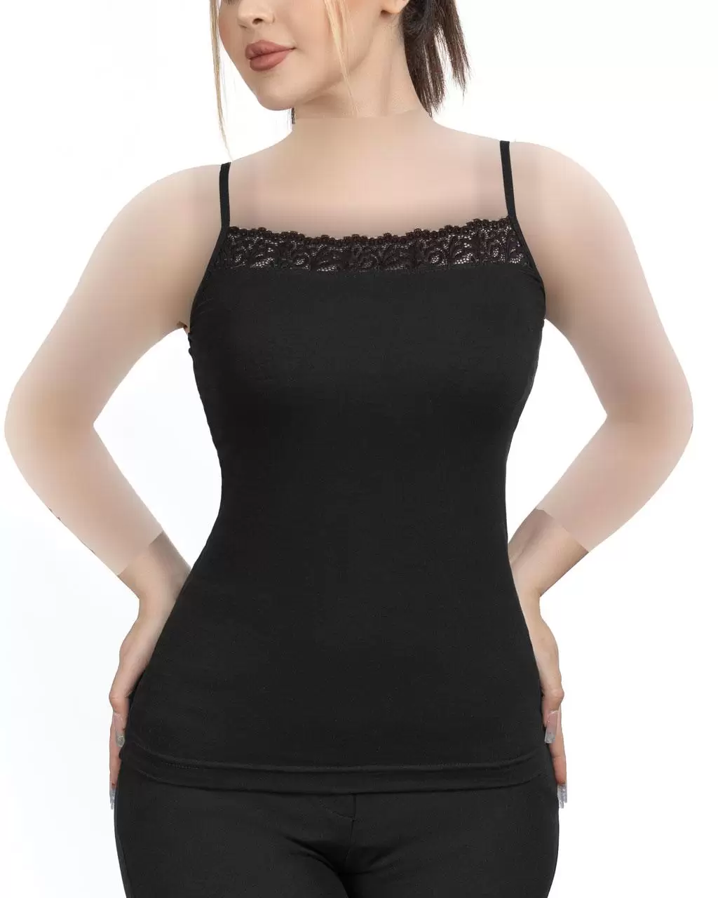 تاب زنانه حاشیه گیپور ساده نهتنها زیباست، بلکه بسیار کاربردی نیز هست. این تاپ گزینهای عالی برای استفاده روزمره در منزل یا زیر لباسهای بیرونی به شمار میآید.