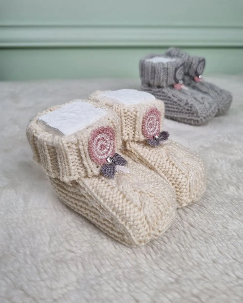 پاپوش کاموایی نوزادی طرح پاپیون؛ ترکیبی از لطافت، گرما و زیبایی برای نوزادان در فصل سرد