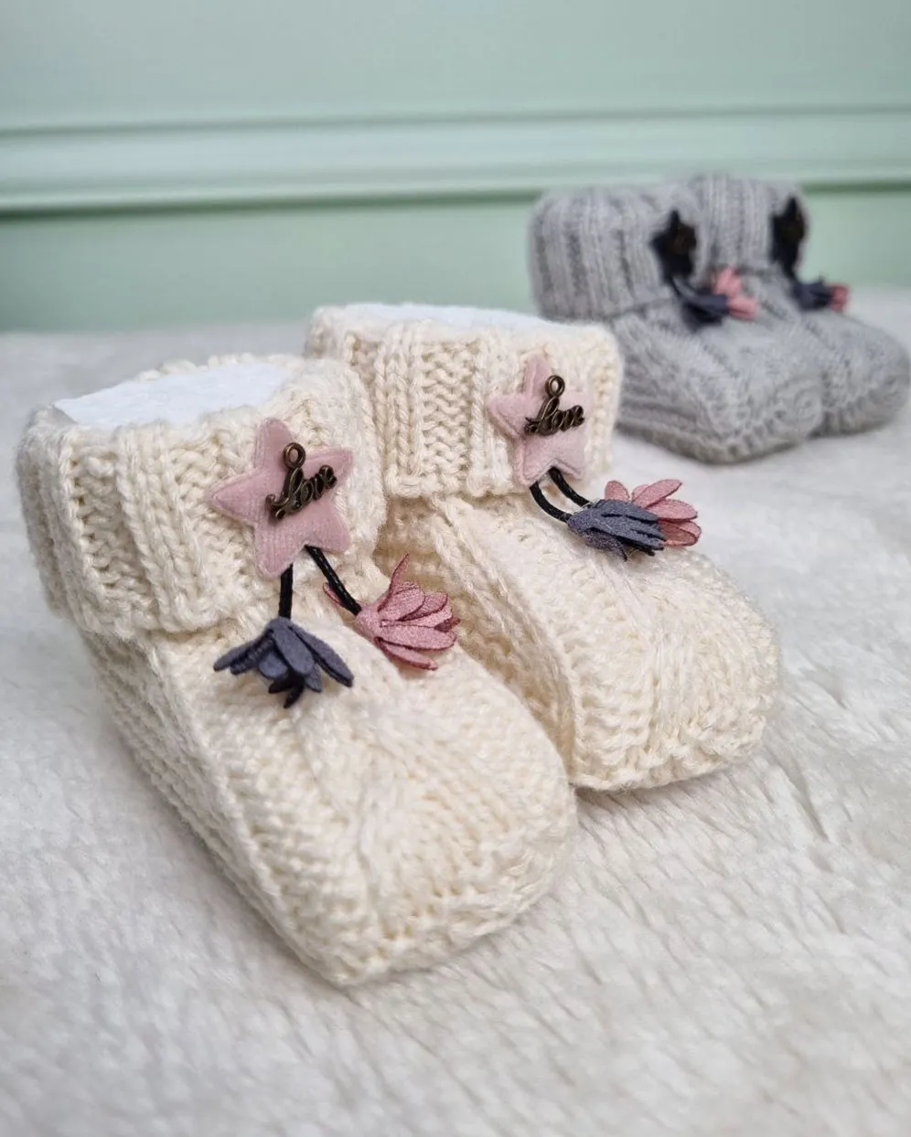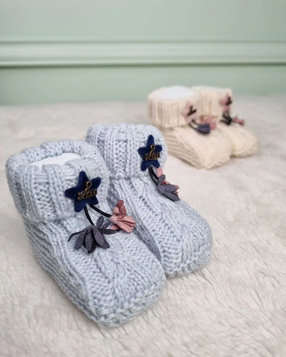 ویژگی پاپوش کاموایی نوزادی طرح گل