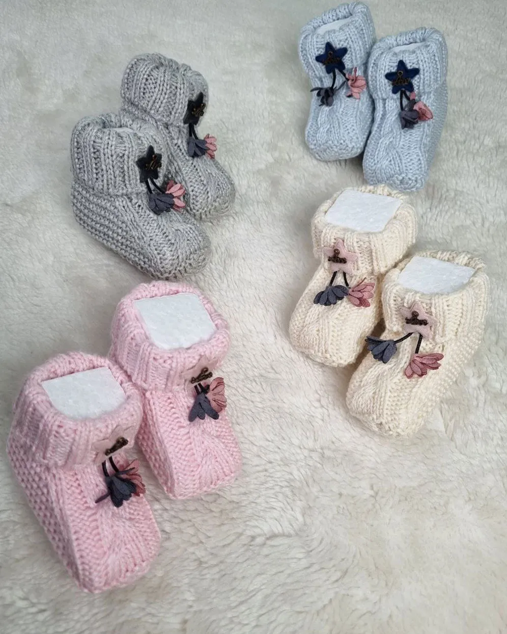 پاپوش کاموایی نوزادی طرح گل؛ انتخابی گرم و لطیف برای پای کوچولوی نوزادان در فصل سرد
