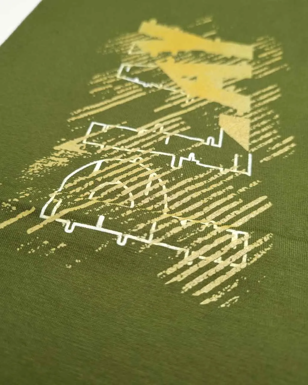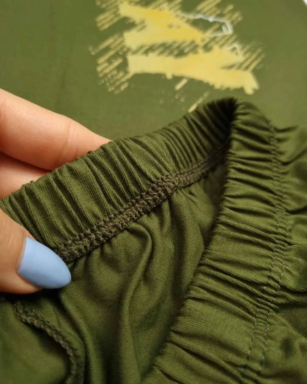 - تیشرت به رنگ زرد خردلی و شلوار سبز زیتونی