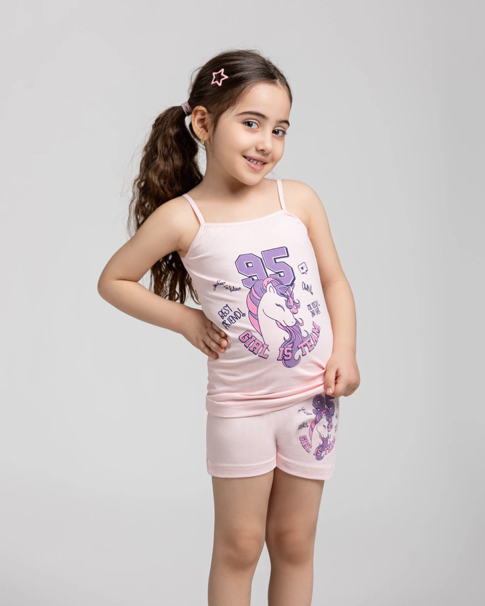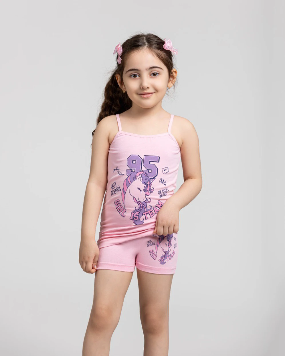 ست زیرپوش و شورت دخترانه نخ پنبه طرح تیم سیلکا انتخابی هوشمندانه برای راحتی و کیفیت روزمره