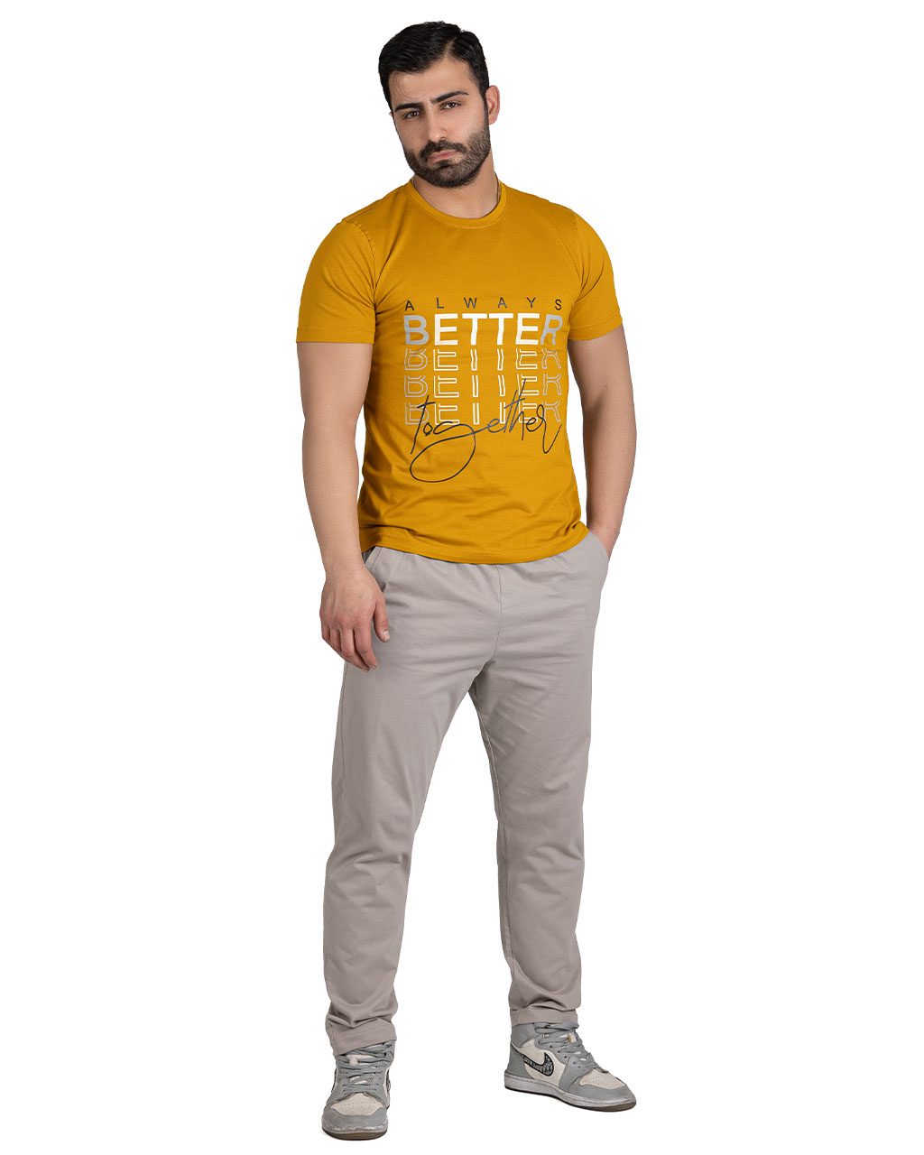 ترکیب طراحی مینیمال با جملهی “Together” روی تیشرت، جلوهای متفاوت و جذاب به این لباس مردانه بخشیده است.