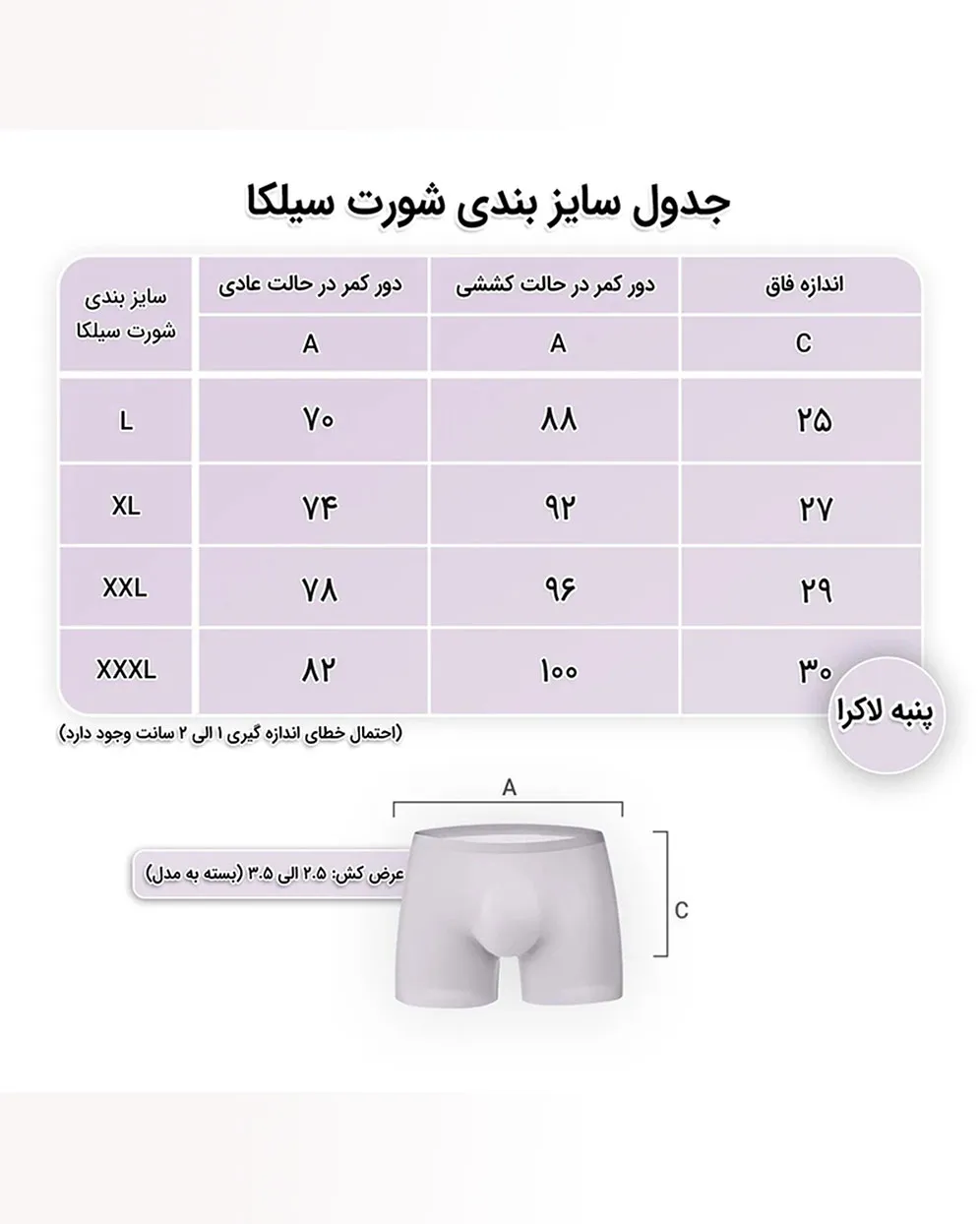 شورت | L | XL | XXL | XXXL |