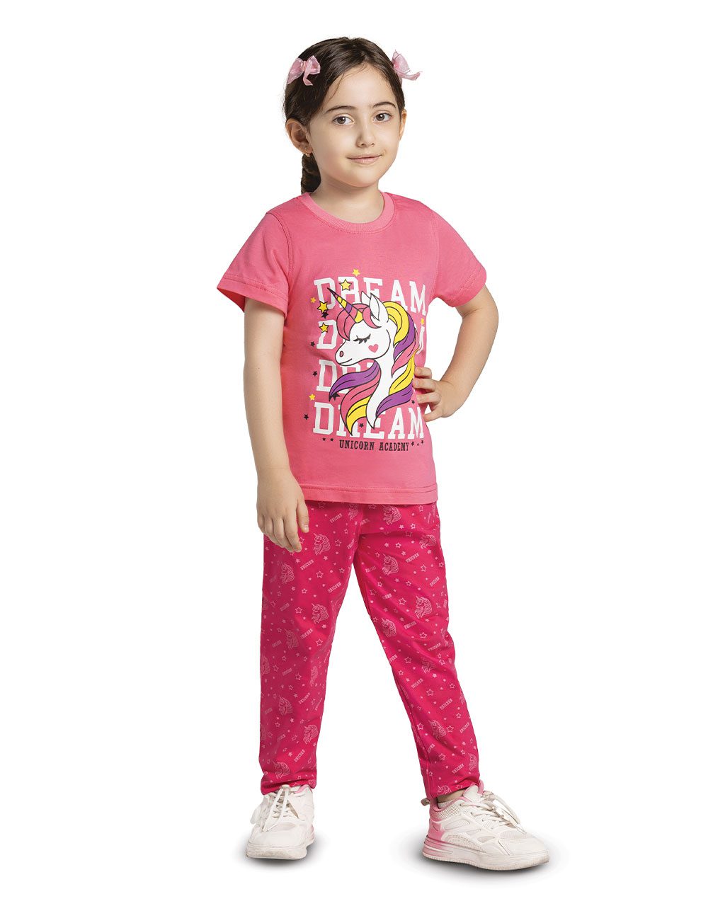 ست راحتی دخترانه نخی طرح یونیکورن سیلکا (اسب تک شاخ) با رنگ صورتی شاد و دلنشین، برای دختران پرانرژی و دوستدار طرحهای فانتزی انتخابی فوقالعاده است.
